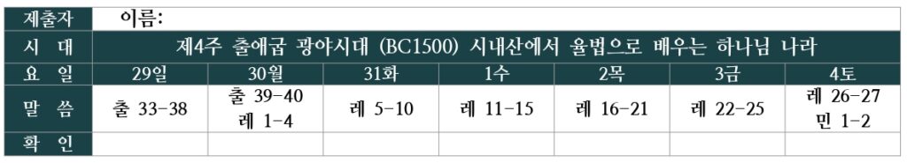 Lecture Biblique 금주 성경통독