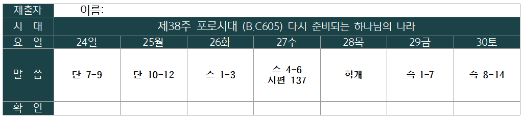 Lecture Biblique 금주 성경통독