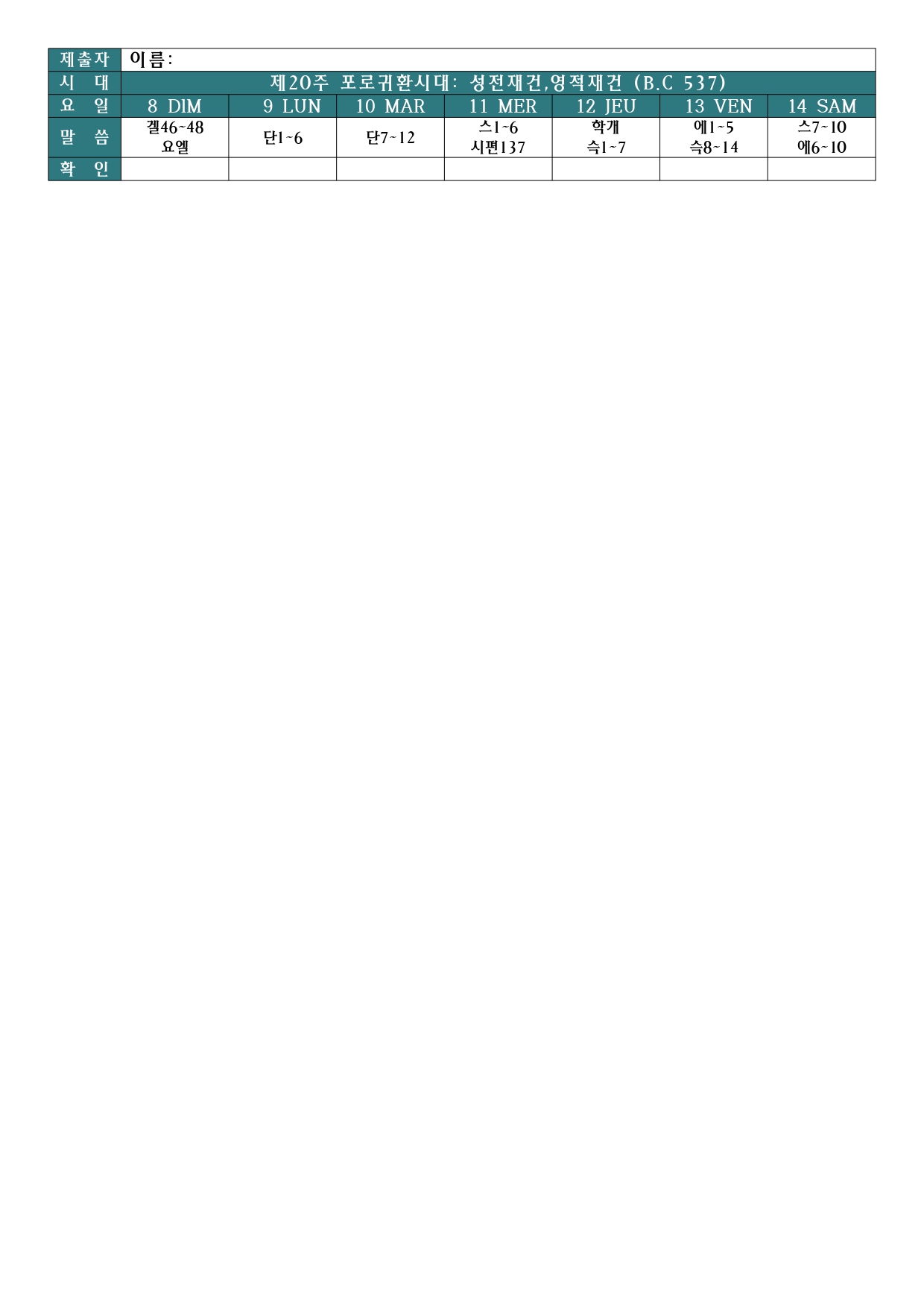 Lecture Biblique 금주 성경통독