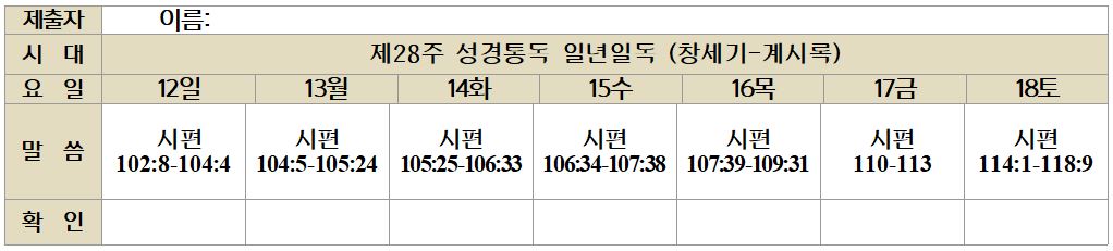 Lecture Biblique 금주 성경통독