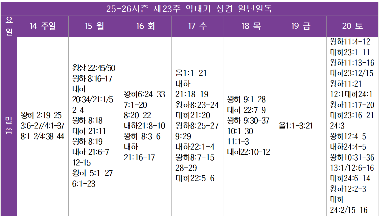 Lecture Biblique 금주 성경통독