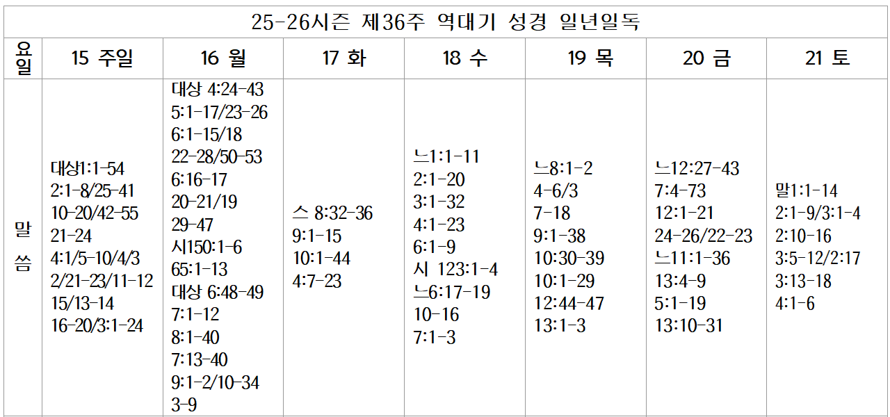 Lecture Biblique 금주 성경통독