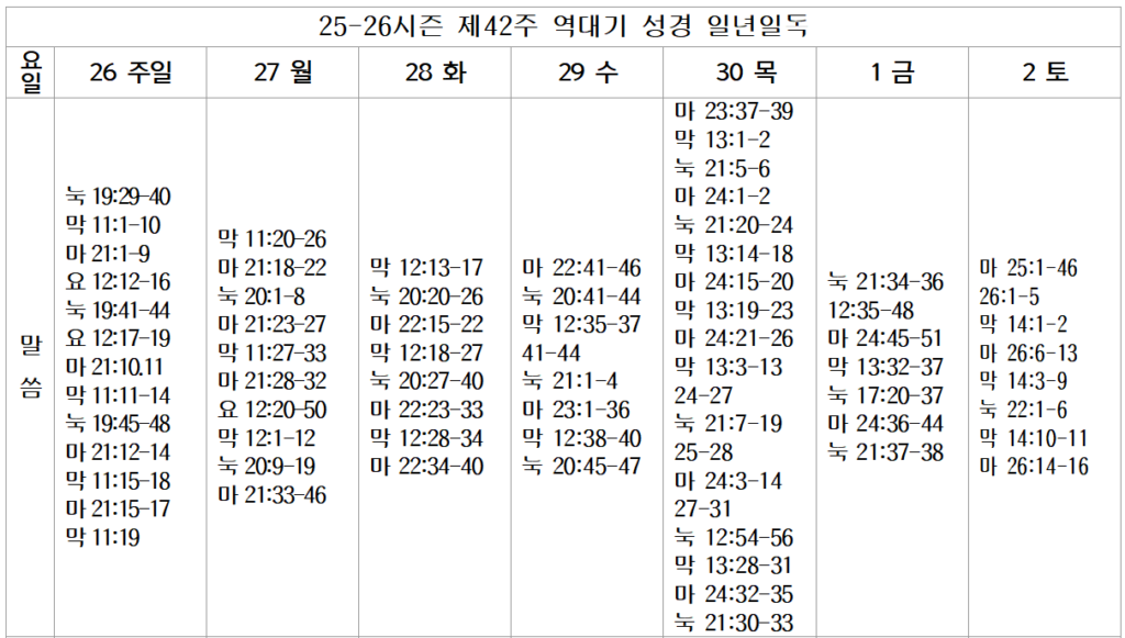 Lecture Biblique 금주 성경통독