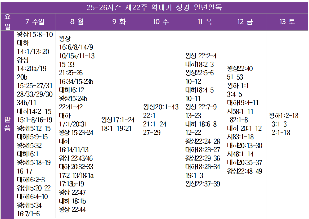 Lecture Biblique 금주 성경통독