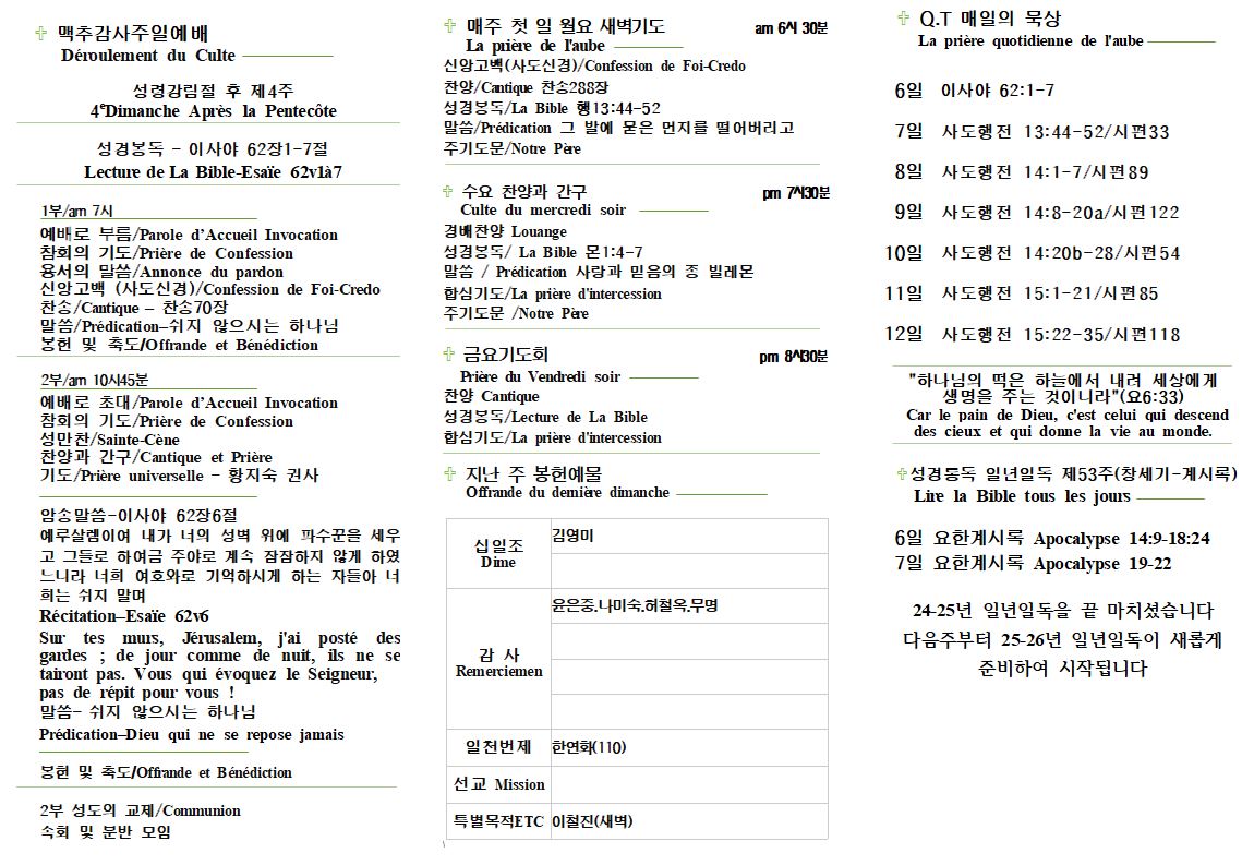 Ordre de culte 주보