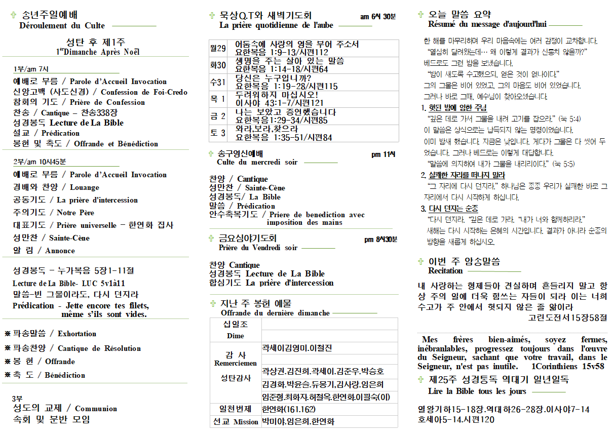 2026년 1월4일 신년주일 주보