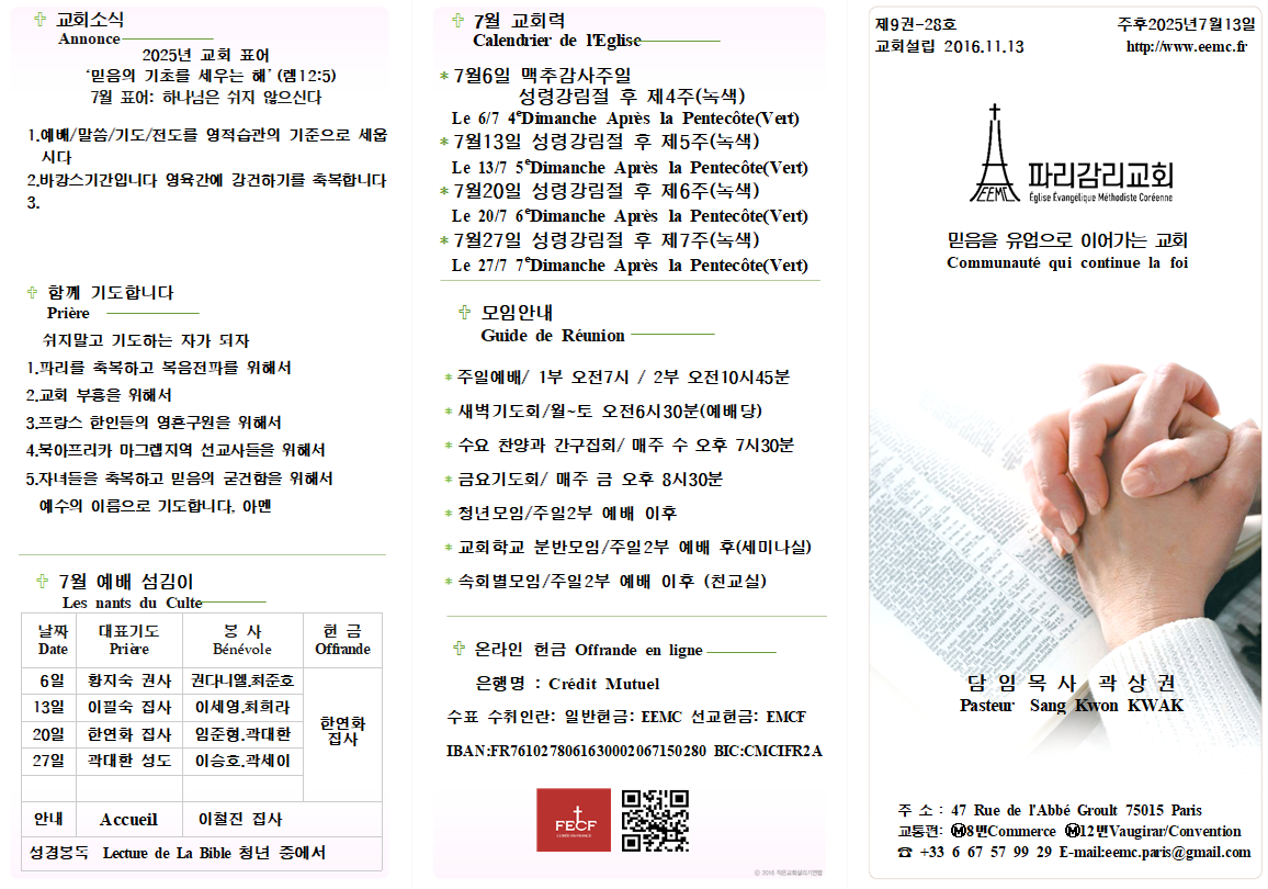 2025년 7월6일 맥추감사주일 주보