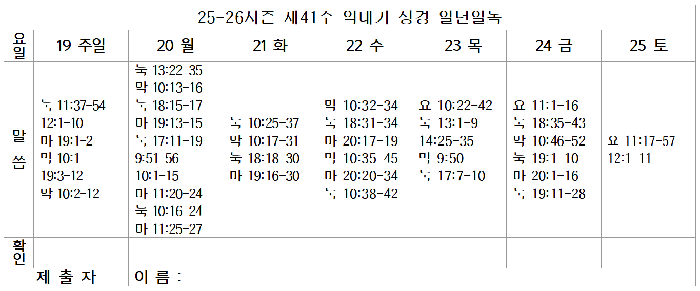 Lecture Biblique 금주 성경통독