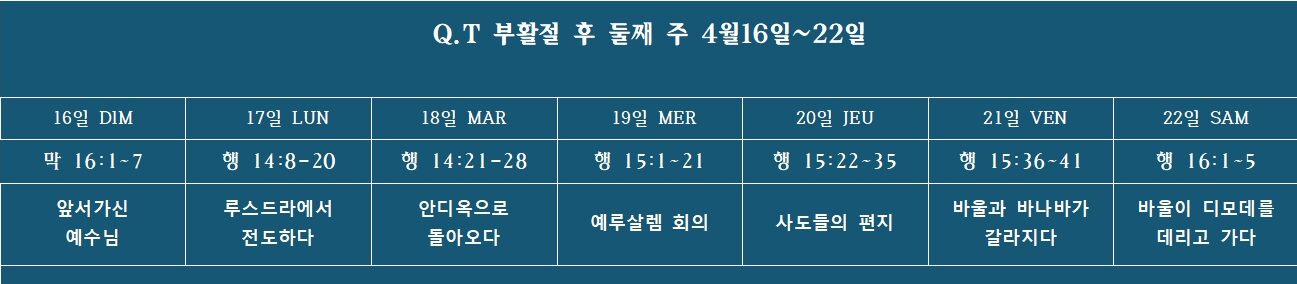Q.T 2023년 4월 9일-4월15일(부활절 후 첫째주)