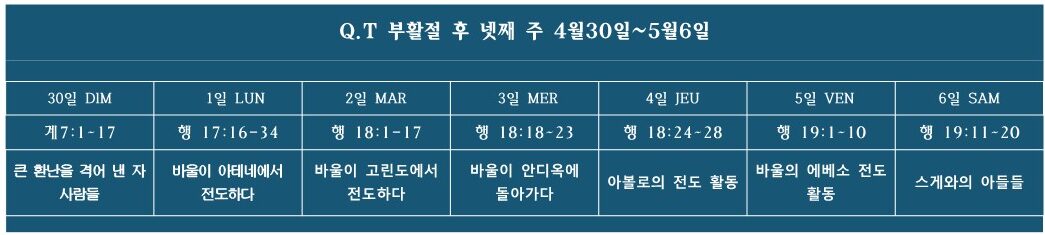 Q.T 2023년 4월 30일-5월 6일(부활절 후 넷째주)