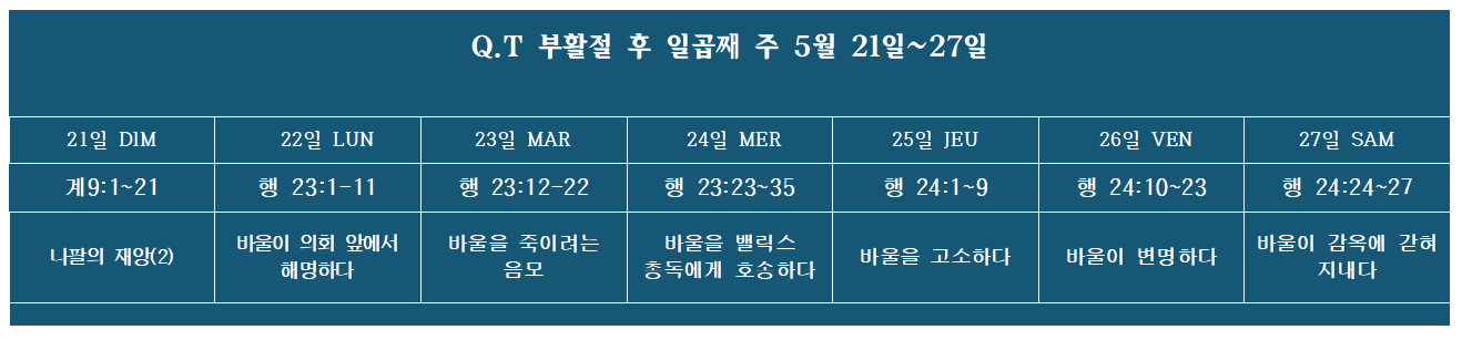 Q.T 2023년 5월 21일-5월 27일(부활절 후 일곱째주)