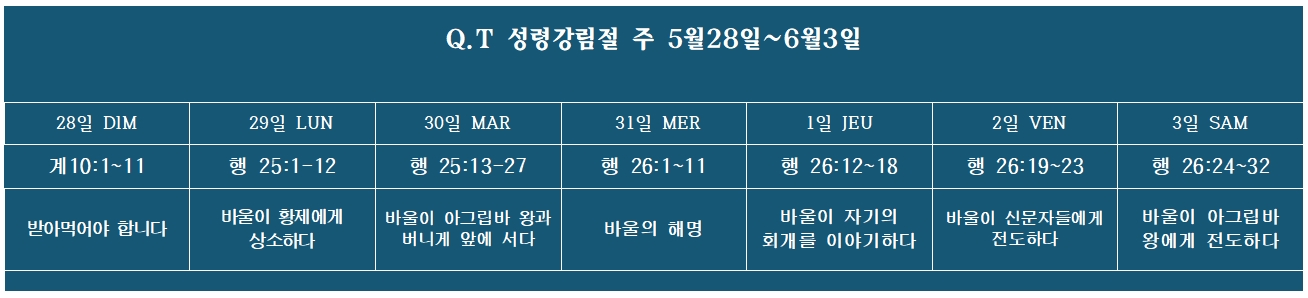 Q.T 2023년 5월 28일-6월 3일(성령강림절 주)
