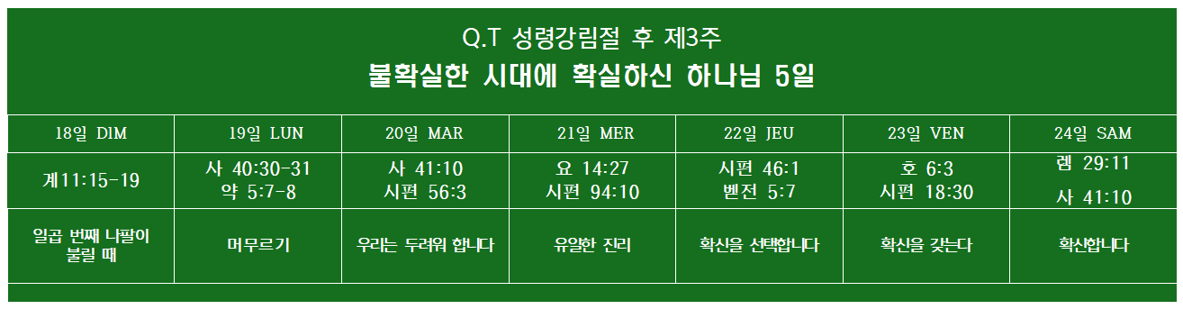 Q.T 2023년 6월 18일-6월 24일(성령강림절 후 제3주)