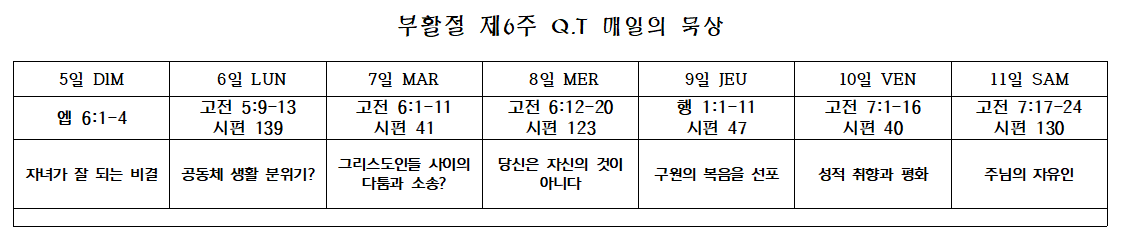 Q.T 매일의 묵상 2024년5월5-11일(부활절제6주)