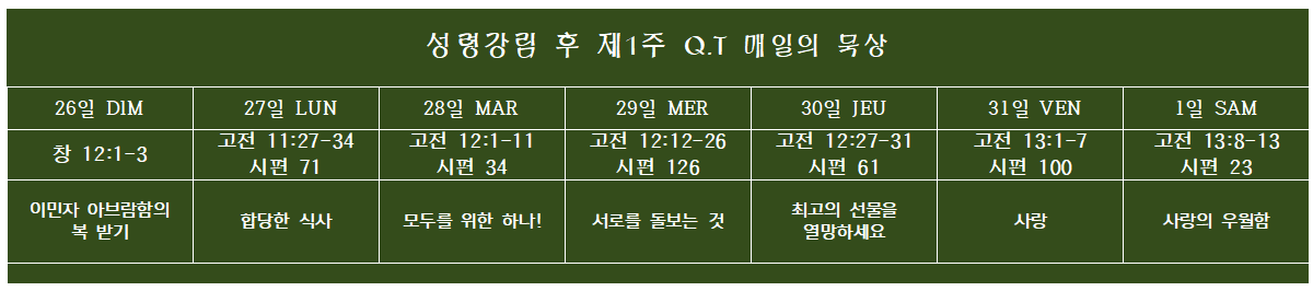 Q.T 매일의 묵상 2024년5월26-6월1일(성령강림절 후 제1주)