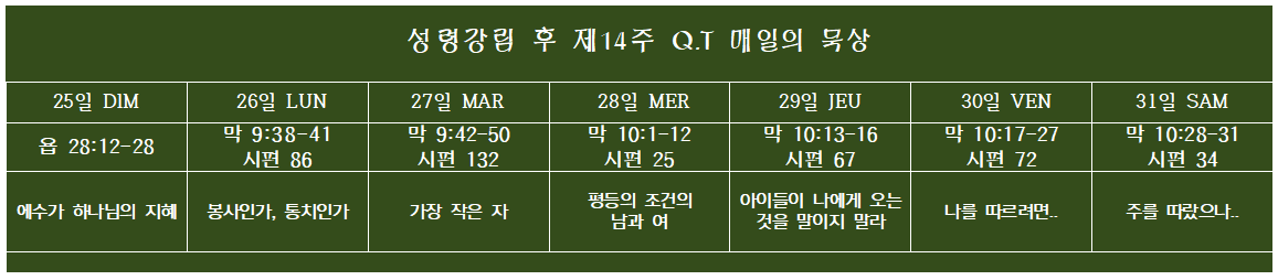 Q.T 매일의 묵상 2024년8월25-31일(성령강림절 후 제14주)