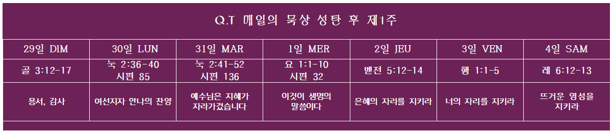 Q.T 매일의 묵상 2024년12월29일-2025년1월4일(성탄 후 제1주 )