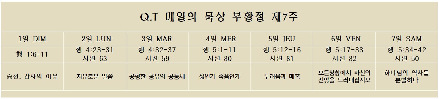 Q.T 매일의 묵상 2025년 6월1~7일(부활절 제7주)