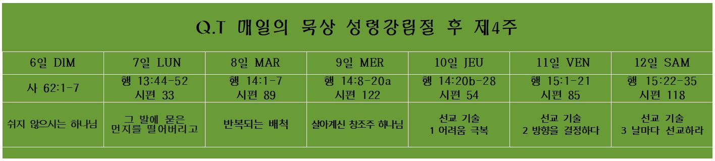 Q.T 매일의 묵상 2025년 7월6~12일) 성령강림절 후 제4주