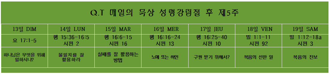 Q.T 매일의 묵상 2025년 7월13~19일) 성령강림절 후 제5주