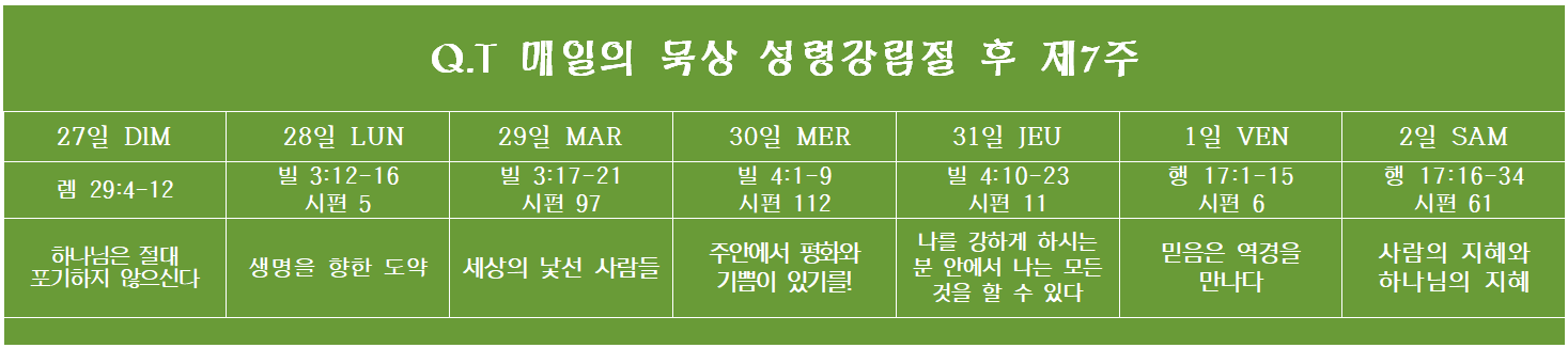 Q.T 매일의 묵상 2025년 7월27~8월2일) 성령강림절 후 제7주