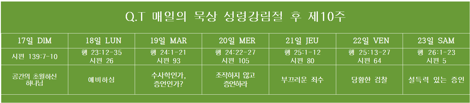 Q.T 매일의 묵상 2025년 8월17-23일) 성령강림절 후 제10주