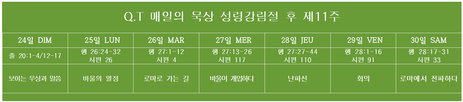 Q.T 매일의 묵상 2025년 8월24-30일) 성령강림절 후 제11주