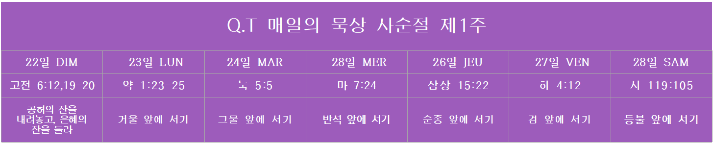 Q.T 매일의 묵상 2026년2월22-28일 사순절제1주