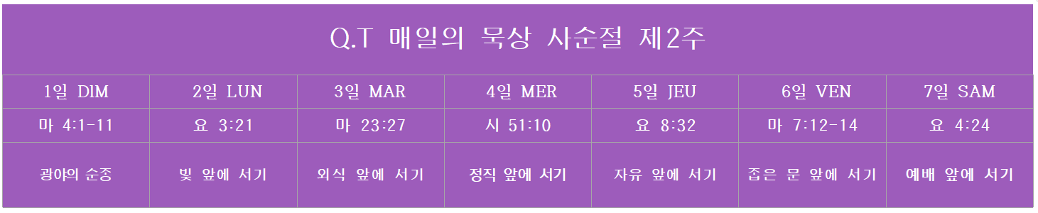 Q.T 매일의 묵상 2026년3월8-14일 사순절제3주