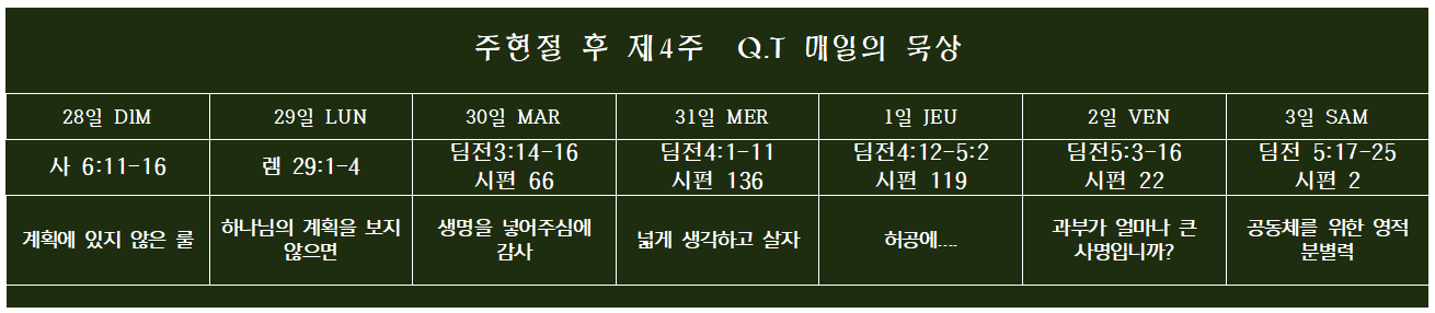 Q.T 매일의 묵상 2024년1월28-2월3일(주현절 후 제4주)