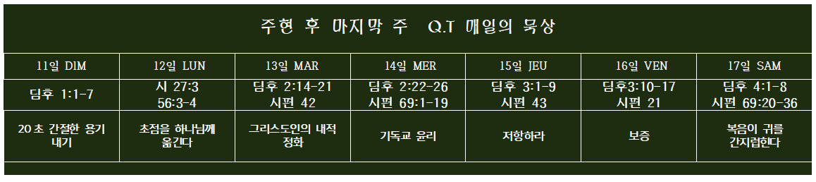 Q.T 매일의 묵상 2024년2월11-17일(주현 후 마지막 주)
