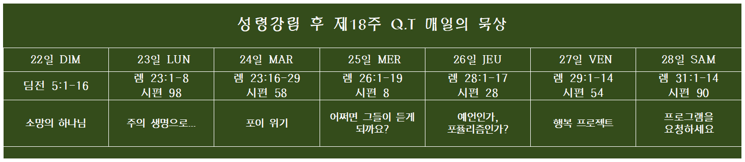 Q.T 매일의 묵상 2024년9월22-28일(성령강림절 후 제18주)
