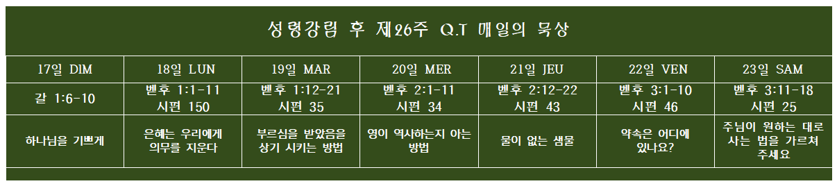 Q.T 매일의 묵상 2024년11월17-23일(성령강림절 후 제26주)
